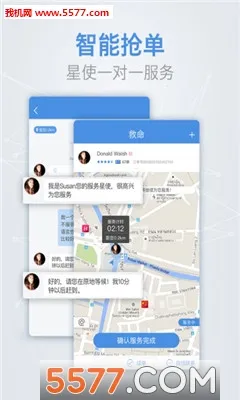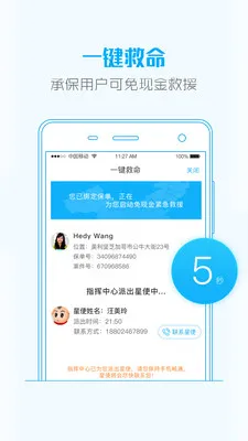 2、一键救援:受保障或非受保障客户,都能用大救星APP或小程序一键救援。点击后5秒倒计时,成功定位呼救,指挥中心工作人员60秒内回电安排救援。