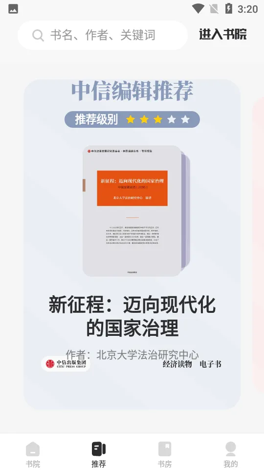 中信书院是中信出版集团旗下专注于精品内容的知识服务平台。它以丰富的优质图书资源为基础,涵盖经济、管理、文化、科技等多个领域。通过数字化的形式,为用户提供便捷的阅读体验。
