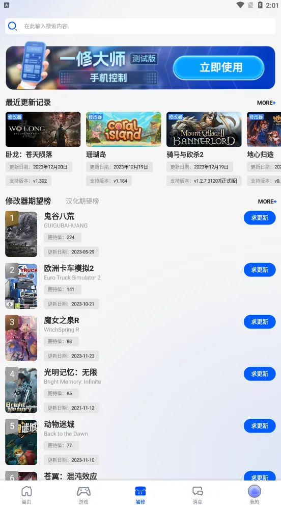 猫修是杭州游侠文化传媒有限公司旗下游戏辅助平台,由老猫汉化团队推出。集一修大师修改器、AI智能攻略、海量资源下载、社区互动等功能于一体,界面简洁,为玩家提供全方位游戏服务 。