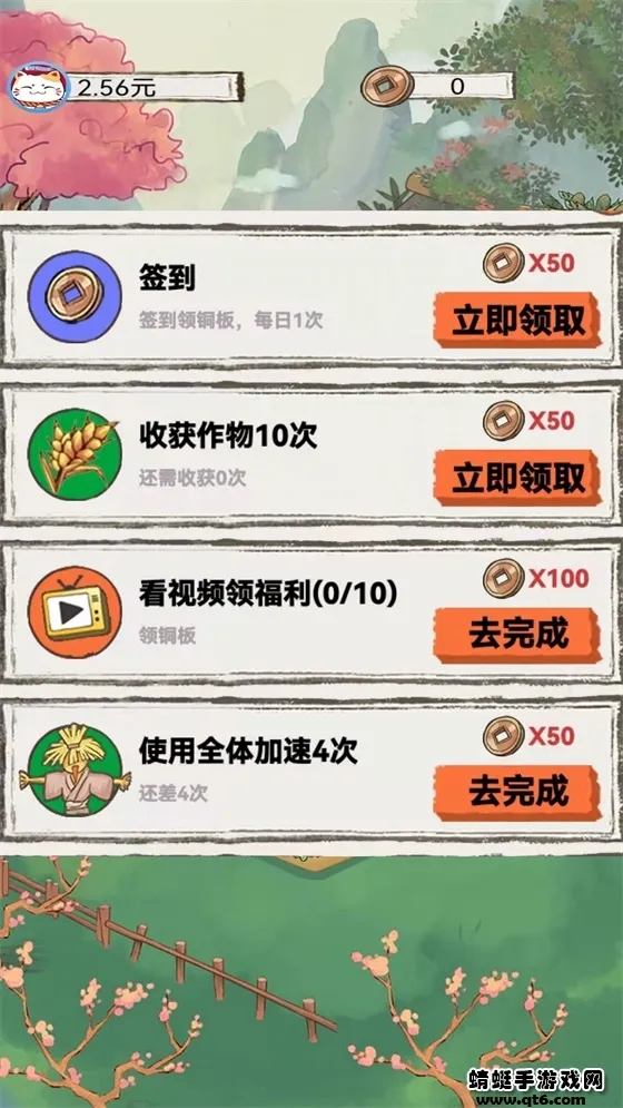 3、画面温馨治愈,在爷爷的农家小院中能种植多样农作物,每天签到还有奖励。