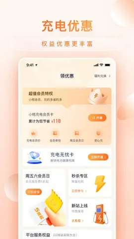 3、充电优惠,有超值会员特权和丰富的优惠活动,小桔平台特色权益专属保障,为用户节省开支。
