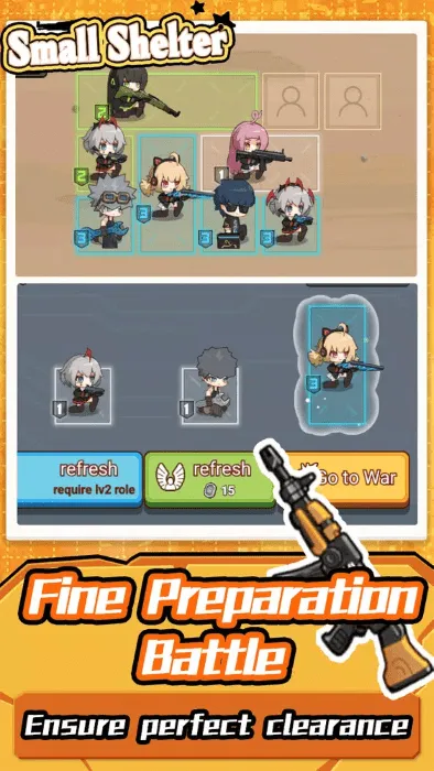 1、Q版二次元画风,角色超萌可爱,手持特色武器,如冲锋枪、扳手等,设计生动有趣,带来轻松奇幻体验。