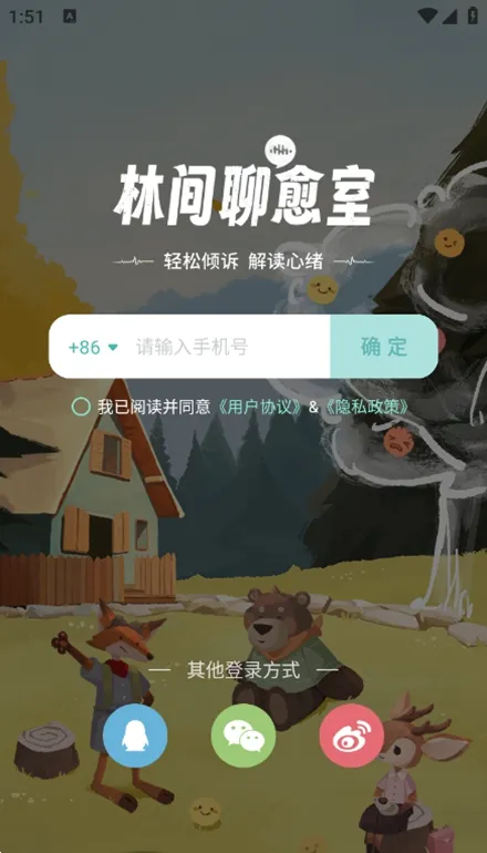 林间聊愈室是专注情绪治愈的AI对话陪伴软件。有可爱小动物相伴写专属日记,支持文字或语音倾诉,能测量分析情绪、查看变化曲线,还有读心卡、温暖问候、时空对话等特色功能,新增多种实用优化。