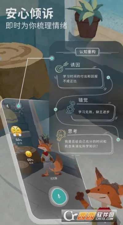 1、可爱小动物陪伴:有叛逆调皮的花花狸、知性温柔的森森鹿、憨厚贪吃的咕咕熊等,它们个性不同,用独特方式陪伴,还会写专属日记。