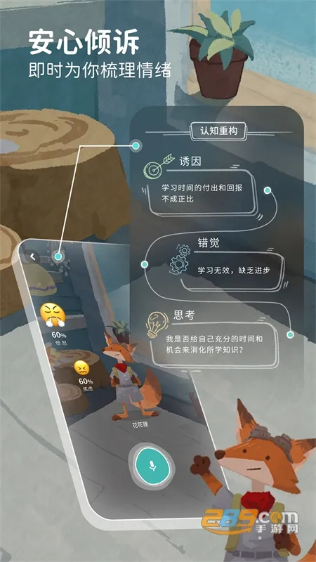 2、情绪被看见:可文字或语音倾诉,安全私密。聊天时测量情绪占比,运用心理技法分析整理并给建议,还能查看情绪变化曲线。