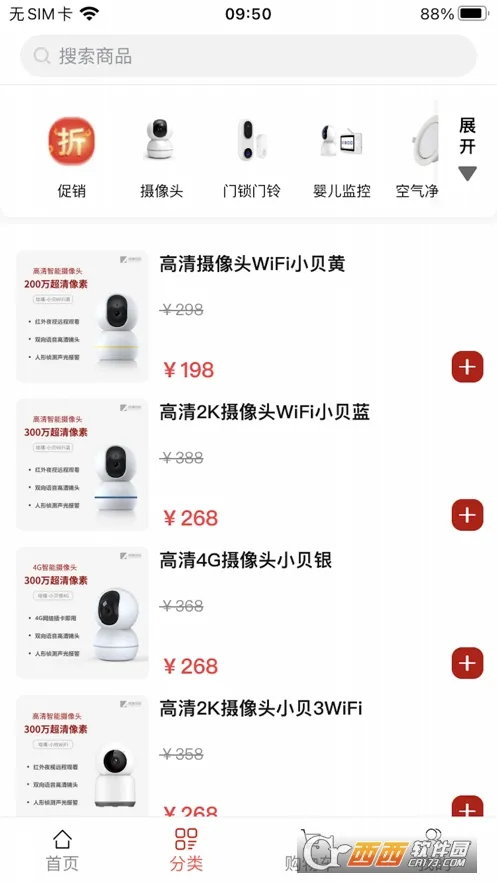 1、商品品类丰富多样,涵盖摄像头、门锁、门铃、婴儿监控、空气净化灯等多类,满足多样购物需求。