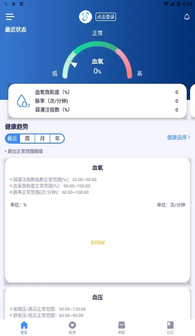 1、可连接多种智能健康检测设备,如永康蓝牙血压计、蓝牙体温计等,准确检测血压、血糖、血氧等各种健康数据,提供科学健康状况评估。