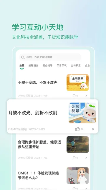 2、实用性强:是学生校园生活必不可少的工具,方便管理学习生活,还涵盖丰富知识内容,提供大量干货供用户学习。