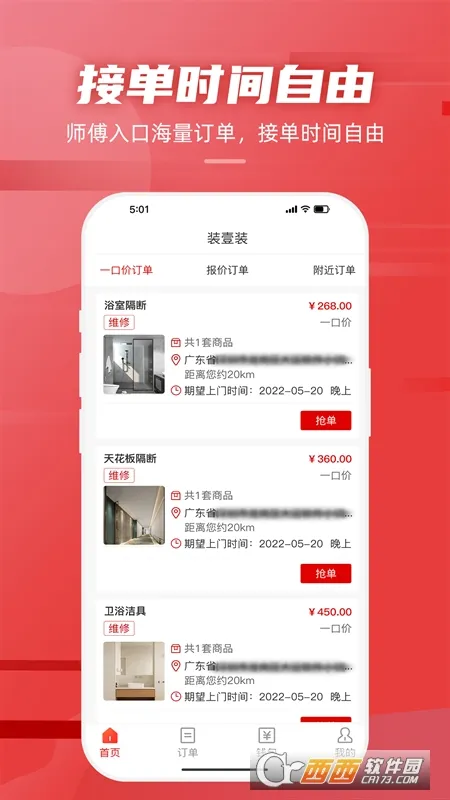 2、打造一站式平台,用户可轻松下单找合适师傅,师傅也能入驻自由接单,为双方提供便利。