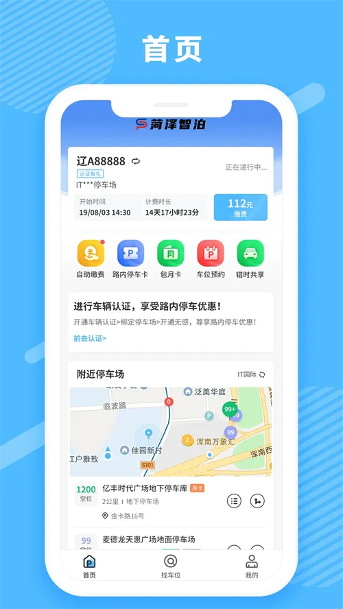 1、覆盖停车相关各类需求,满足菏泽地区车主找车位、预约、导航、缴费等多方面应用。