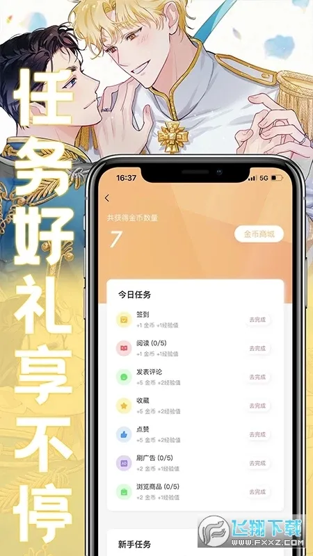 4、福利众多,所有资源免费,做任务可获礼品,有专属社区和金币商城礼品兑换等,适合漫迷们在此交流分享。