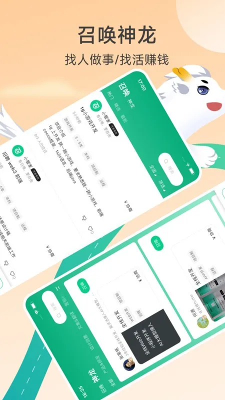 有召是杭州有龙科技自主研发的新就业平台。针对传统招聘痛点,结合新趋势打造高端在线服务交易市场。提供海量职位,支持远程工作,有筛选匹配、在线协作等功能,还有专属使者贴心守护,助求职者、企业各得所需 。