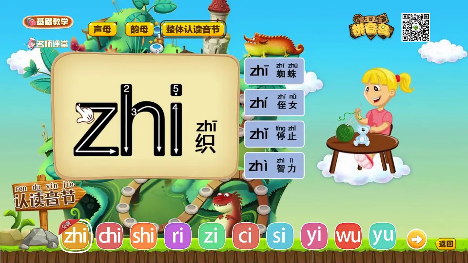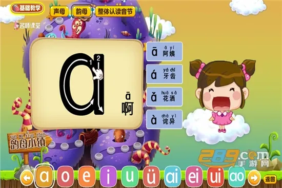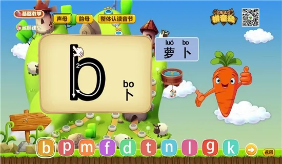 2、该游戏采用动画教学形式,每小节一个拼音与对应生字认读,结合笔画与读音,还能让孩子跟着动画学写拼音,规范书写。