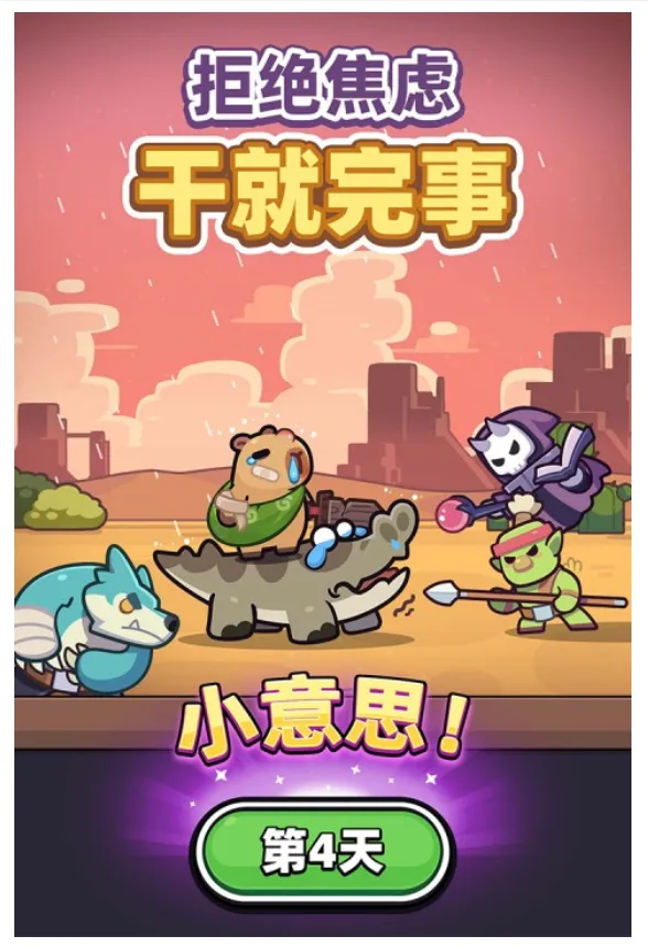 3、成熟外围设计:用可爱小动物与经典玩法吸引玩家后,以传统放置RPG模式衔接,使玩家从创意过渡到数值追求。