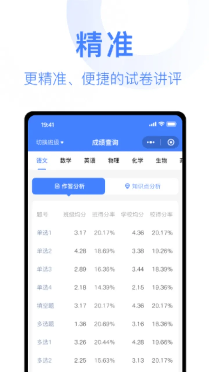 4、教师可随时随地阅卷,且使用便捷,同时能通过数据分析了解学生薄弱点,制定针对性教学计划 。