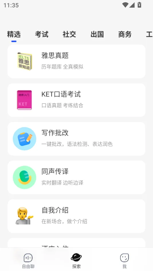 3、提供多维度情景模拟,涵盖20余类真实对话场景,支持多种英美澳发音切换,提升跨文化交际与临场反应能力。