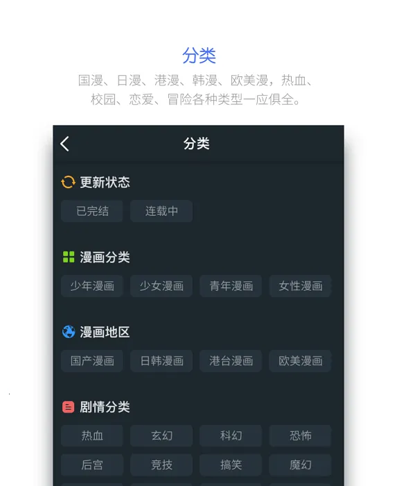 2、分类清晰,支持按类型、热度搜索,无需翻找,能精准定位想要的漫画。