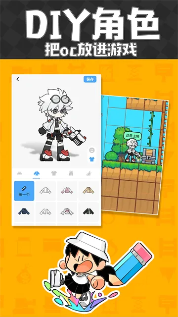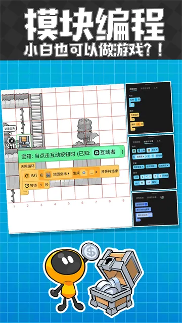 1、创作自由:可随时随地自由创作主题背景、人物角色、机关障碍等游戏元素,尽情发挥想象力。