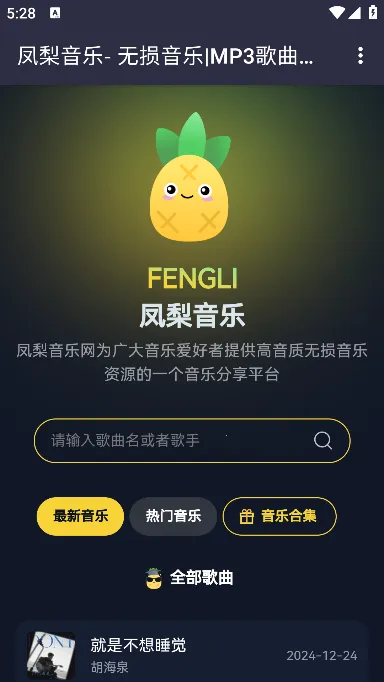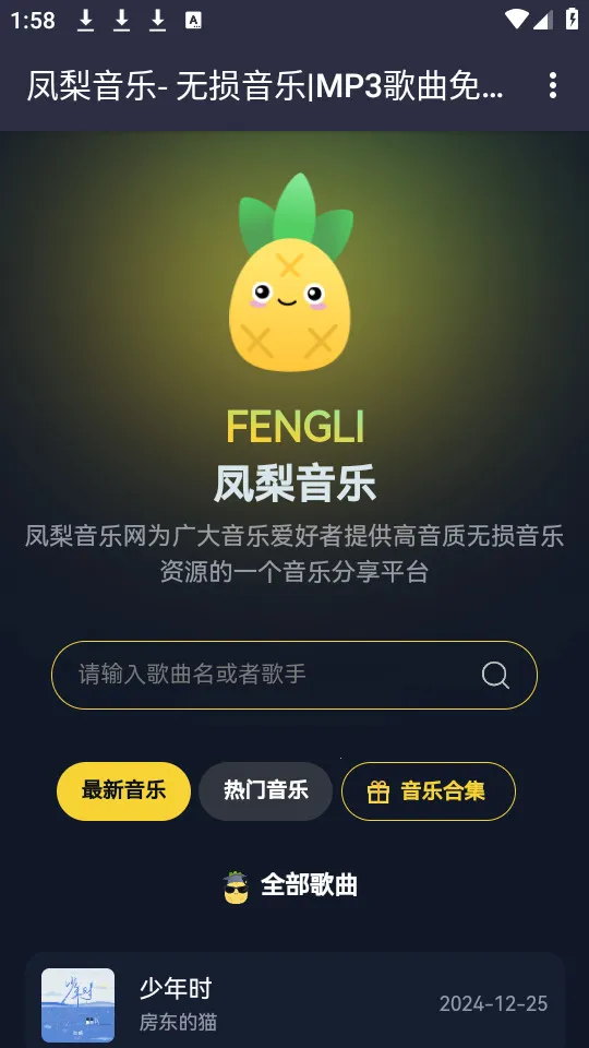 1、凤梨音乐2025下载资源的音乐库丰富多样,涵盖世界各地多种风格作品,无论经典老歌还是热门单曲都有,能满足不同听觉需求。