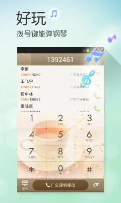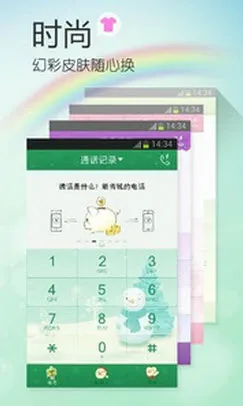 4、个性时尚:有海量超萌养眼主题设置,可自由设置拨号背景,按键音升级为时尚mini钢琴键,尽显个性。