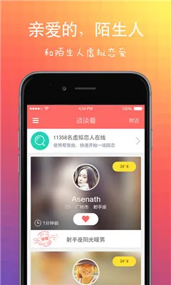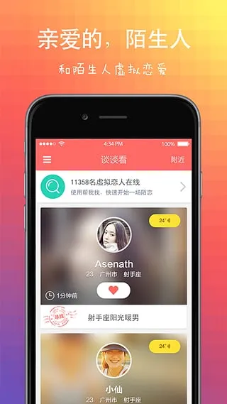 4、支持查找全国和附近的虚拟恋人,或许能遇到同城老乡,拉近彼此距离 。