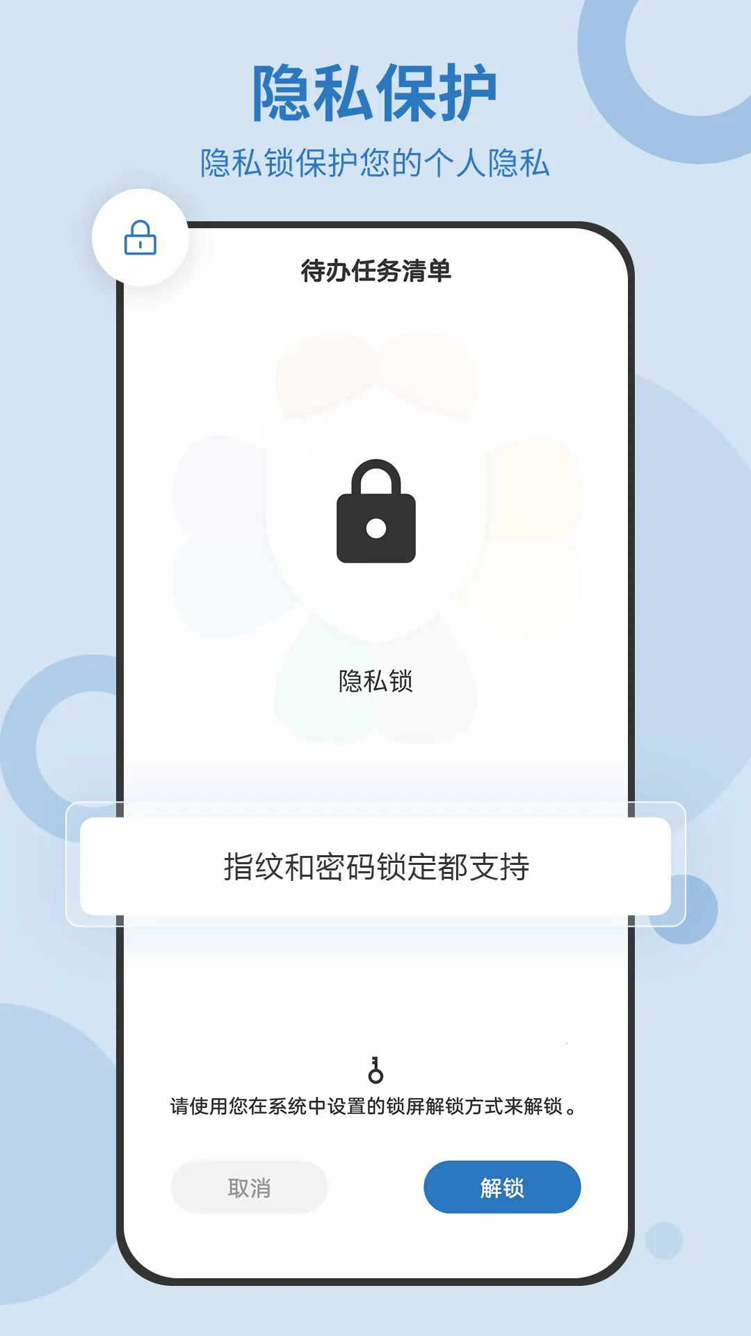 2、它功能丰富,不仅能清晰标记完成状态,方便区分已完成和未完成事项,还支持标签分类管理不同项目,隐私保护方面也有隐私锁保驾护航。