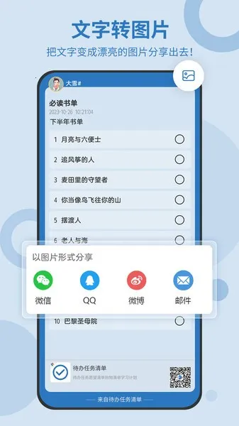 4、拥有分享功能,可将列表生成图片或直接以文字内容分享到社交平台。