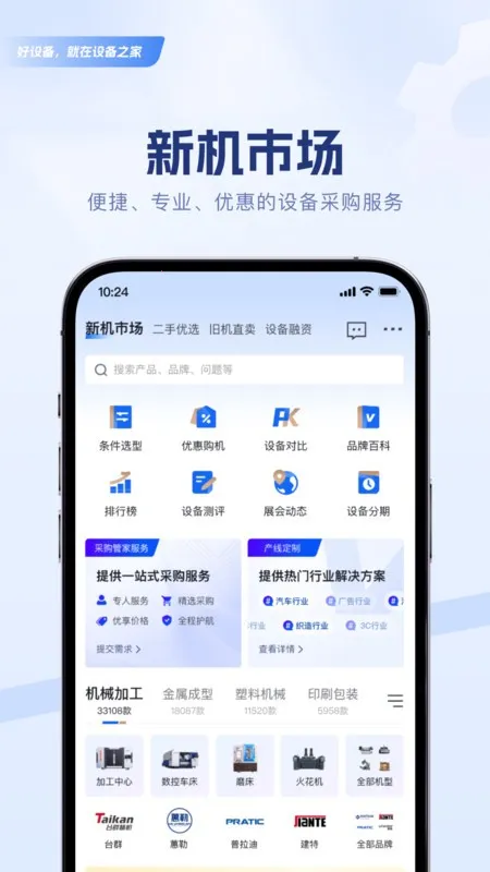 设备之家最新手机版是工业机械设备采购平台,涵盖多领域设备,分类清晰。有精选机型推荐、行业百科查询等功能,融合直播互动。联合众多厂商,提供融资等全流程服务,还能监测行情,助力高效采购 。