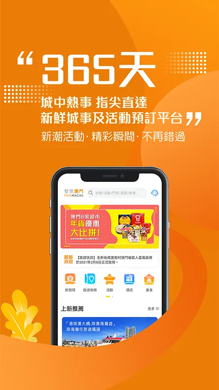 1、一站式服务体验佳:发现澳门可让用户一站式获取澳门优质景点门票、当地美食、酒店住宿、演出票务、上网卡、交通票券等服务,还支持多种货币支付,轻松预订和规划浸入式旅行。
