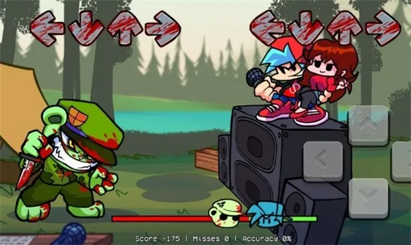 1、玩法体验:FNFVS残忍熊安卓版是音乐节奏模组,玩家扮摇滚小子救女友,与残忍熊音乐对决。进入游戏点击开始,通过界面两侧按键跟节奏操作,倒计时前击败敌人通关。还能根据不同技巧,如熟悉曲目节奏、提升操作反应、观察敌人攻击模式等,来获取高分。