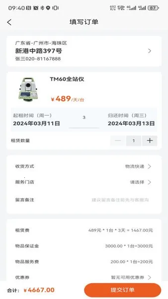 1、使用体验良好,它是专为测绘地理信息行业打造的租赁服务平台,操作简单,用户能根据需求在手机上直接下单租赁设备或人才,且价格明码标价,无二次收费,还有专人处理订单。