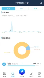3、数据呈现直观:通过图表功能,能直观查看财务状况,每日到每年的收支数据一目了然,还提供月报和年报功能,方便规划未来消费。