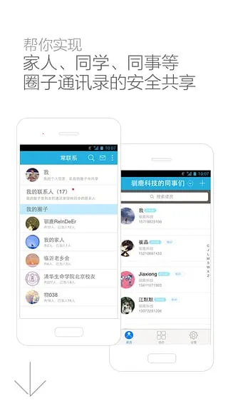 2、支持建立多种圈子通讯录,无论是亲友、同学、朋友的生活圈子,还是校友会、老乡会、商会协会等商务组织圈子,都能轻松创建,成员间可彼此共享联系方式。