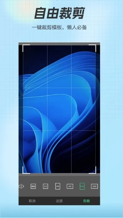 3、裁剪便捷:裁剪功能提供一键裁剪模板,能快速将照片按指定比例裁剪成理想尺寸,是懒人必备的作图神器。