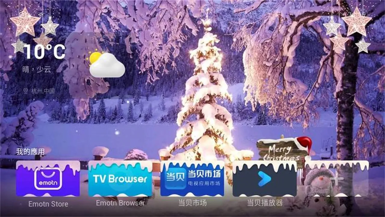 1、简洁丝滑体验:Emotn UI 是高效的安卓电视桌面美化工具,能带来简洁且反应速度快的丝滑电视 UI 界面,点击启动后电视会呈现不错的风格界面。