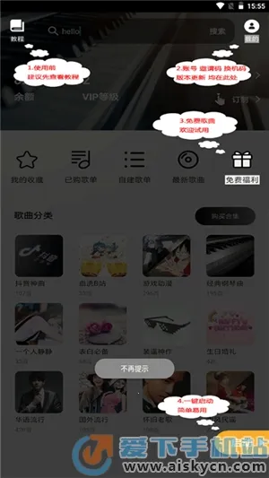 3、曲库丰富:内置海量热门手游的琴谱资源,共有两万多首歌曲,涵盖抖音神曲、经典钢琴曲、怀旧老歌、古风民谣等,还支持用户自定义个人歌单,且每月持续更新。