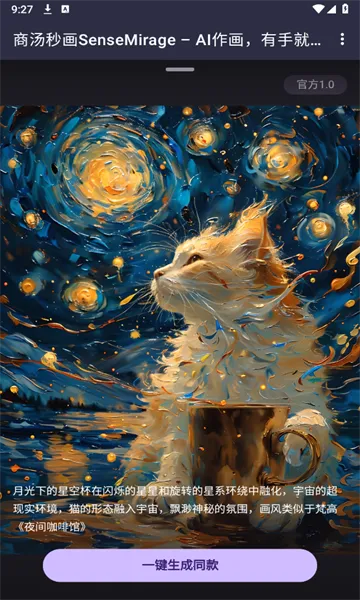秒画APP是商汤旗下的软件。它功能可丰富啦,是集绘画创作、相机拍摄、图片编辑于一体的多功能软件。在绘画方面,有全套绘画工具,能从基础涂鸦到专业漫画创作,还配了丰富绘画素材,降低创作难度,让咱们充分释放创意。相机拍摄功能很专业,能自定义拍照模式,拍高清美照,留存生活美好瞬间。图片编辑这块,能调整色温、饱和度等参数,还能裁剪、加滤镜,让图片质感提升。另外,它还有便捷记事本功能,能高效管理信息。商汤秒画ai工具还能根据文字描述或参考图像自动生成画作,操作简单,新用户注册有免费生成机会,分享还能获无限卡。不管是绘画爱好者还是日常需图片编辑的人,用它都很合适。