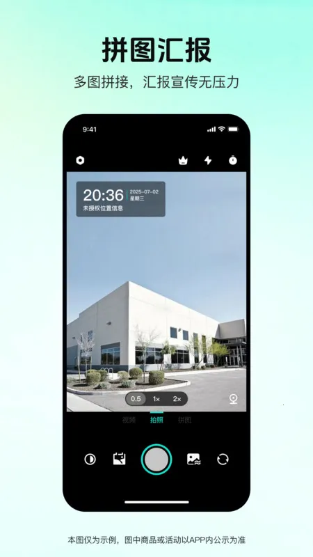 4、亮点优势显著:按地理位置自动分文件夹,整理照片更快捷;相关实拍图可打包发送,响应快显专业;做日报一键生成带水印汇报图;拍照自动计数、团队自动同步、外勤打卡自动统计等功能,极大提升工作效率。该软件适配安卓系统,安装包大小适中,安装流程简单。