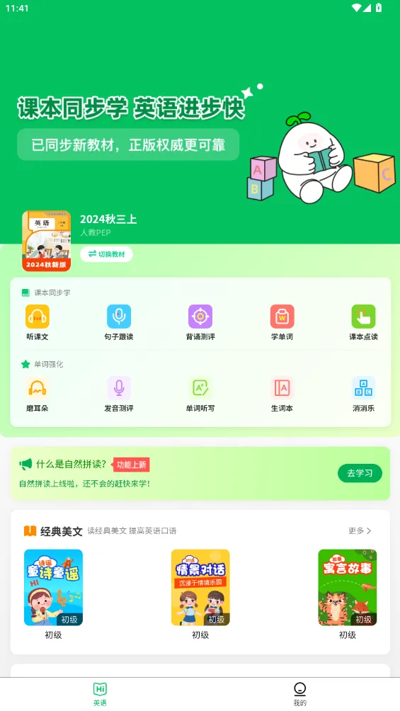 1、学习资源丰富:英语朗读宝2025官方正版整合了海量线上学习资源,涵盖实用基础英语、职场英语、生活英语等多元领域,能满足不同学习目标与场景需求。像提供海量听力训练音频、丰富词库、各类英语文章资源等,覆盖不同难度层级与场景。