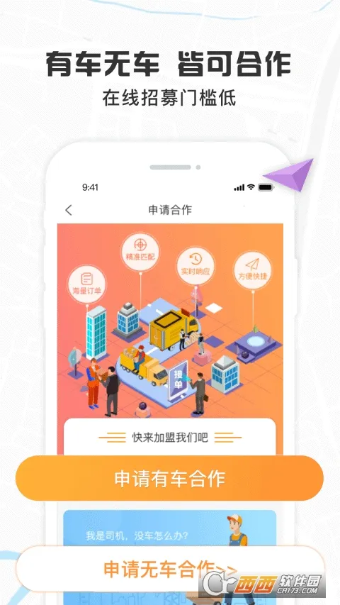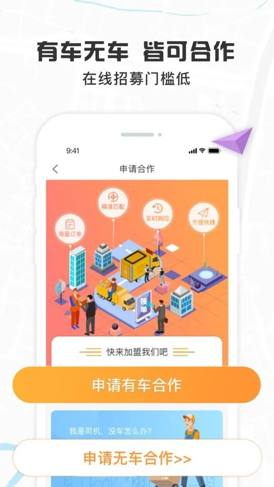 4、合作灵活,有车无车皆可合作,合作招募的条件门槛极低,便于快速获取招募状态,车主和司机角色身份可自由切换,好管理。
