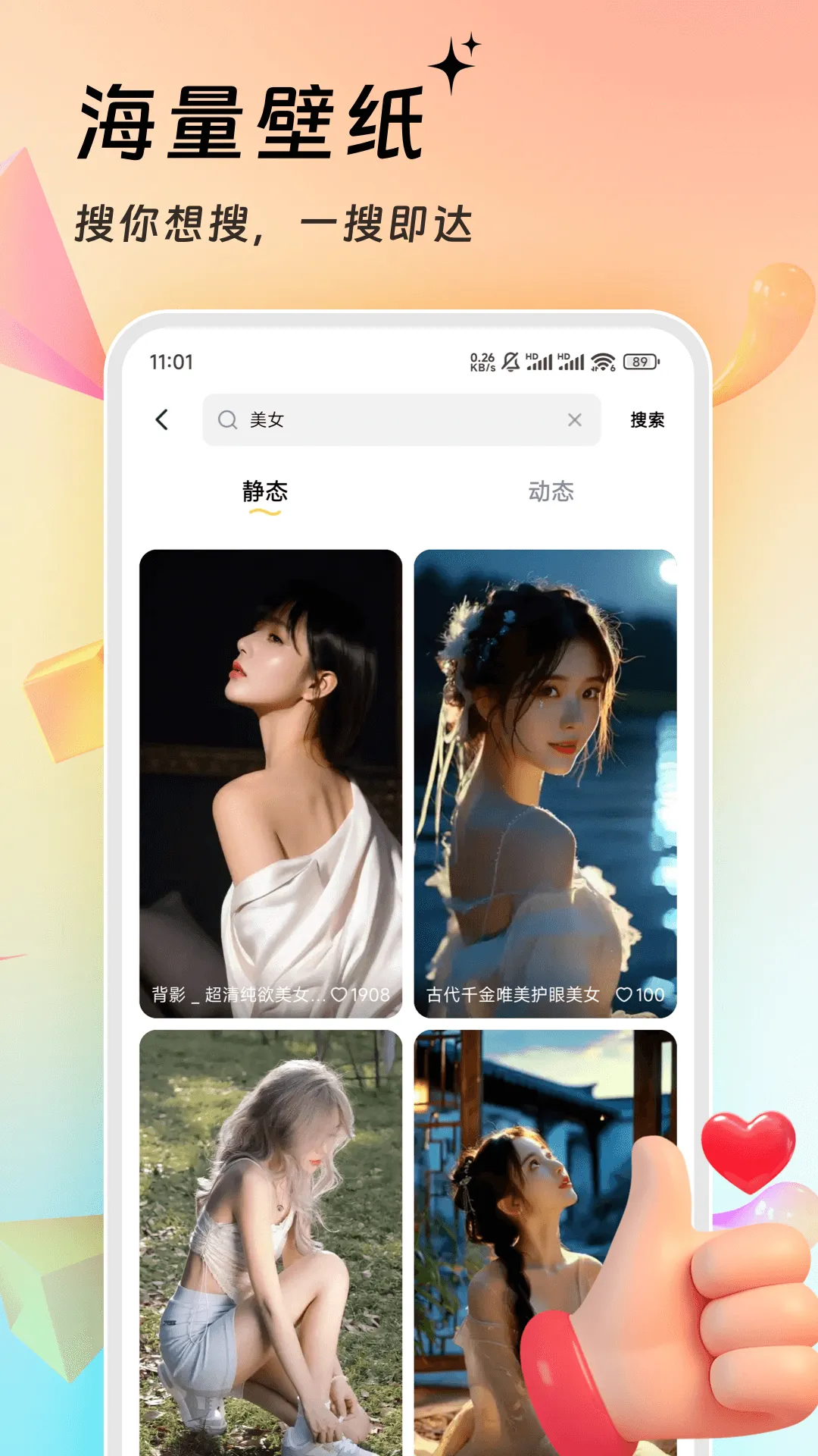 它能解决你找不到心仪壁纸的难题。要是你觉得手机界面单调,用它就能轻松换风格,从清新到酷炫,随意切换。软件里按风格、场景等智能分类,还有专业搜索引擎,输入关键词就能精准找到壁纸,节省你找图的时间。