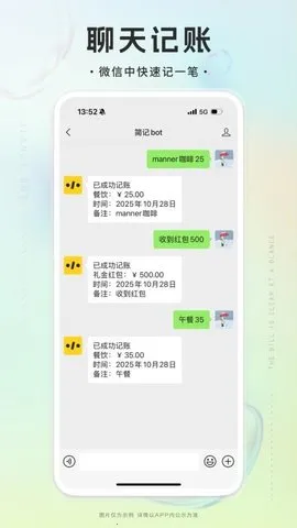 1、简记bot2025是一款简化记账流程的软件,通过手机记账、聊天记账等方式记录消费数据,支持收支同步、分类统计与加密保护,能让使用者高效掌握消费动态,实现安全便捷记账。