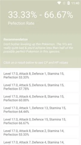 1、精准计算个体值,基于宝可梦种族值与当前等级,能准确算出个体值IV,助力玩家做出最佳选择,让玩家清晰了解宝可梦实际情况。