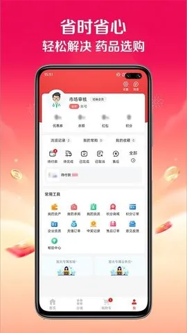 4、保障优惠多:不仅提供购药保障服务,保障药品品质和消费安全,还有海量优惠,如限时秒杀、优惠券、特价药品等,让用户能获取实惠。此外,还有售后保障服务,可快速解决售后问题。