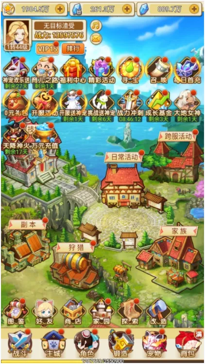 3、休闲玩法与福利:游戏内场景画面精美,有独立Q版建模,搭配轻柔音乐,还能撸可爱小猫,营造放松氛围。开服送百抽及自选角色,还有可爱小猫帮忙挖宝藏提供挂机收益。此外,游戏福利众多,如英雄集结奖励、百抽豪礼、新手礼包等。