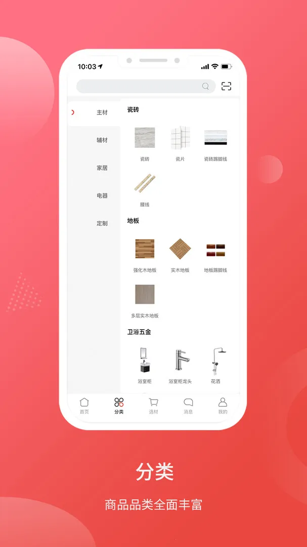 1、建材资源全面,涵盖从地板瓷砖、油漆涂料到水电五金、厨卫洁具等数万种商品,能满足从设计到施工的全方位需求。