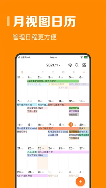 4、提供周视图、月视图等多种查看方式,清晰呈现近期记事,支持日程回溯。内置二十余种预设规划模板库,可对重要任务设置多次提醒,自定义提醒铃声和重复周期。