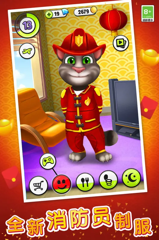 4、创意造型打造:提供超过1000种毛色、服装和家具组合,玩家可发挥创意,为汤姆猫打造专属个性造型,让它始终引领潮流。