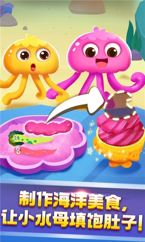 游戏玩法也有优化。像搜寻迷路的水母宝宝环节,增加了更多障碍和小机关,让救援过程更具挑战性;烹饪海底海藻鲜虾堡时,食材选择更丰富,孩子能发挥更多创意。