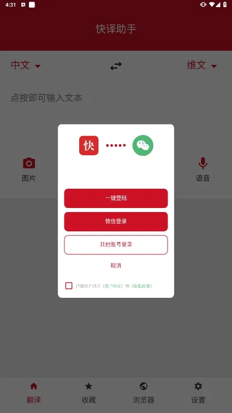 4、翻译精准迅速,内置先进算法,输入后能立马得出精确结果,还提供多种实用小功能,如内容收藏、语音录入识别等。